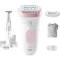 Le Braun Epilator Silk-Epil SE5-885BS est un épilateur sans fil pour usage humide et sec avec plusieurs vitesses. Il inclut une tête d'épilation flexible, tête lavable, divers embouts pour zones sensibles, tondeuse et accessoires de rangement. Rechargeable pour utilisation sans fil. Adapté à l'épilation des jambes, aisselles et ligne bikini avec lumière intégrée.