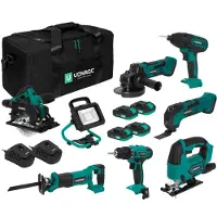 Vonroc Pack outils sans fil Plate-forme de batteries 20V - 4.0Ah | 7 machines, 2 batteries 4.0 Ah et un chargeur rapideà partir de338,95