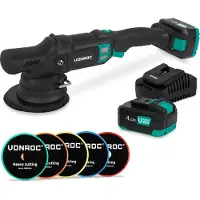 Vonroc PRO Polisseuse à double action 20 V – Ø 150 mm | Avec 2 batteries 4,0 Ah, Chargeur Rapide et 5 disques de polissageà partir de163,95
